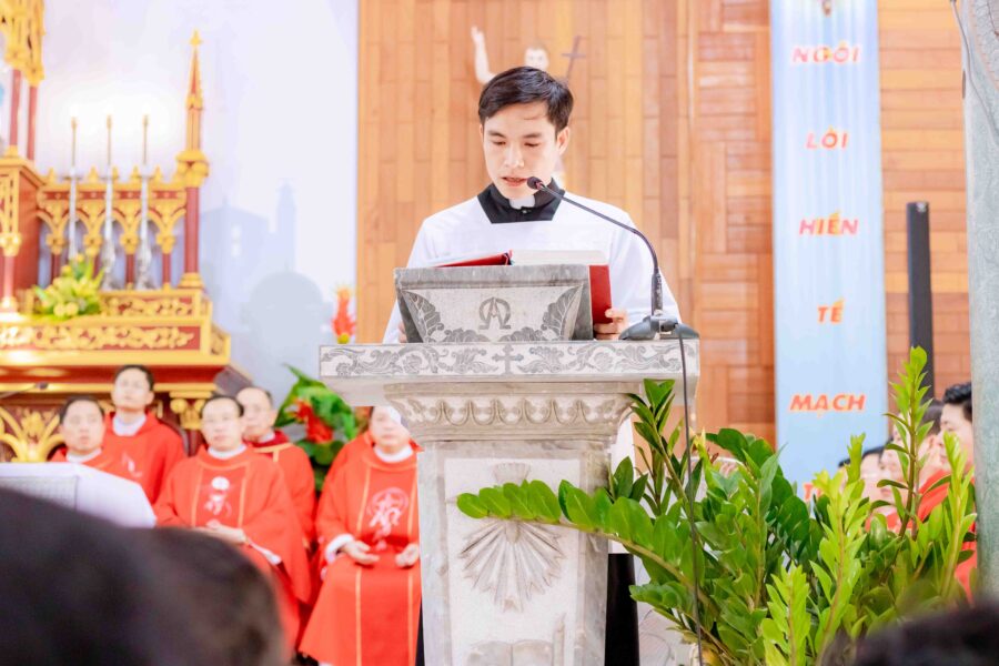 Chia sẻ trong thánh lễ, khởi đi từ trích đoạn Tin Mừng theo thánh Matthêu (Mt 20,20-28) trình thuật về câu chuyện bà Salômê, dẫn hai người con của mình là Giacôbê và Gioan đến gặp Chúa Giêsu, để hi vọng một người được ngồi bên hữu, một người được ngồi bên tả Ngài. Từ đó, cha Phêrô Nguyễn Huy Lưu, quản xứ Xuân Tình, đã quảng diễn về con đường ơn gọi thiên triệu là con đường đầy khó khăn, thách đố chứ không phải là con đường dễ đi, con đường của vinh hoa, lợi lộc thấp hèn trong thế gian. Ngài cũng chia sẻ một số nhân tố ảnh hưởng đến sự phân định và trưởng thành trong việc lựa chọn ơn gọi thiên triệu của những bạn trẻ trong các gia đình Công giáo.